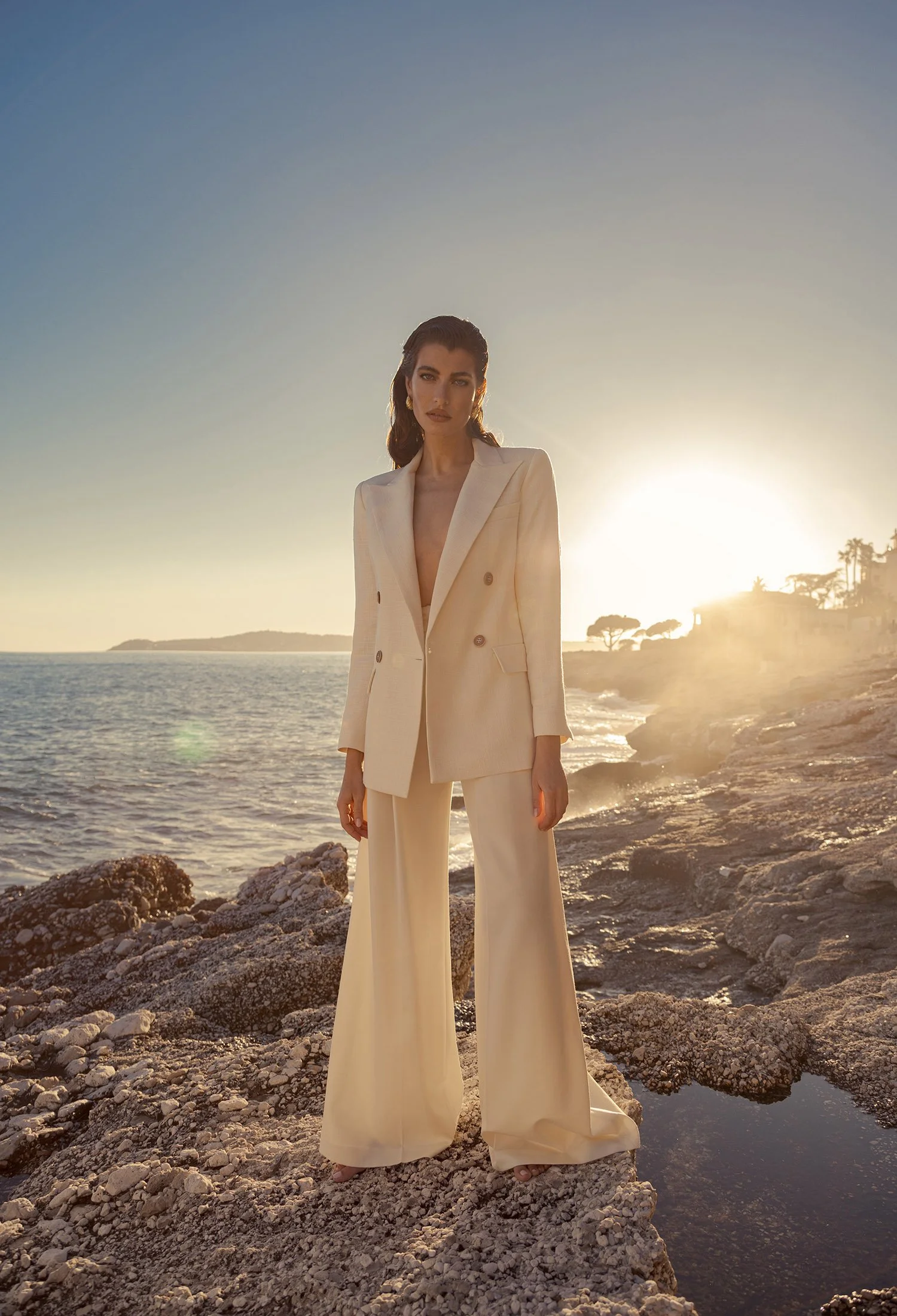 Photographed along the Riviera coastline by photographer Jeremy Jakubowicz, the visual direction emphasizes natural light and clean composition. The sea breeze, warm sun and mineral tones of Monaco create a refined contrast with the structured cuts and flowing lines of the garments. Each image captures a quiet confidence: a modern femininity defined not by excess, but by precision and restraint.
